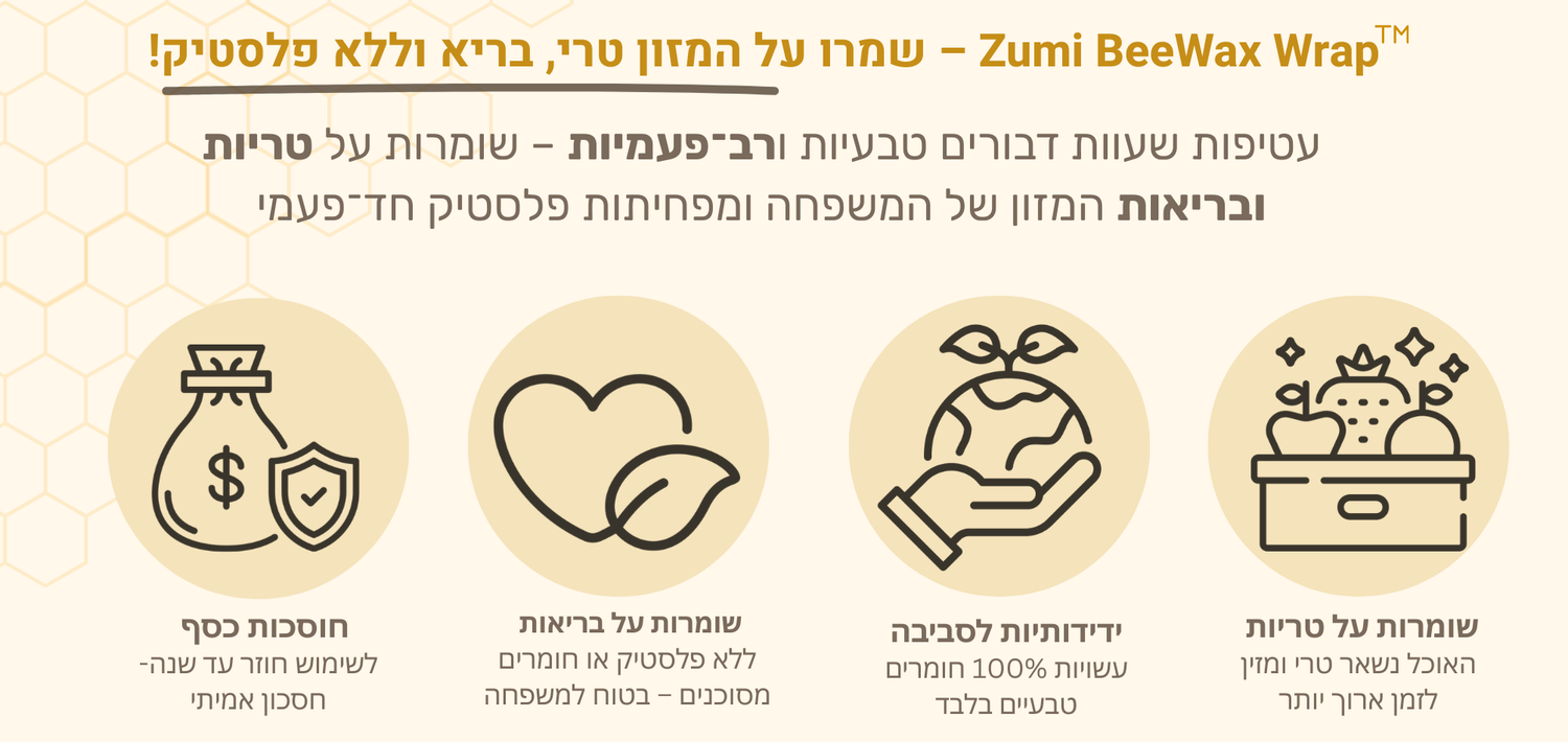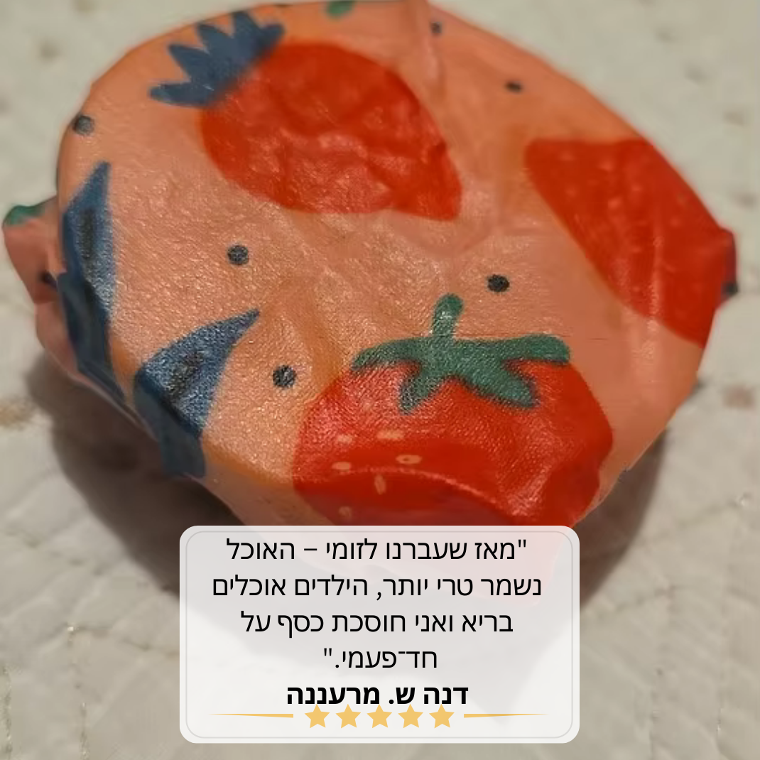 בלי פלסטיק ובלי כימיקלים. עם זומי האוכל נשאר טרי יותר, נזרק פחות, אתם חוסכים אלפי שקלים בשנה ובעיקר - שומרים על בריאות המשפחה.