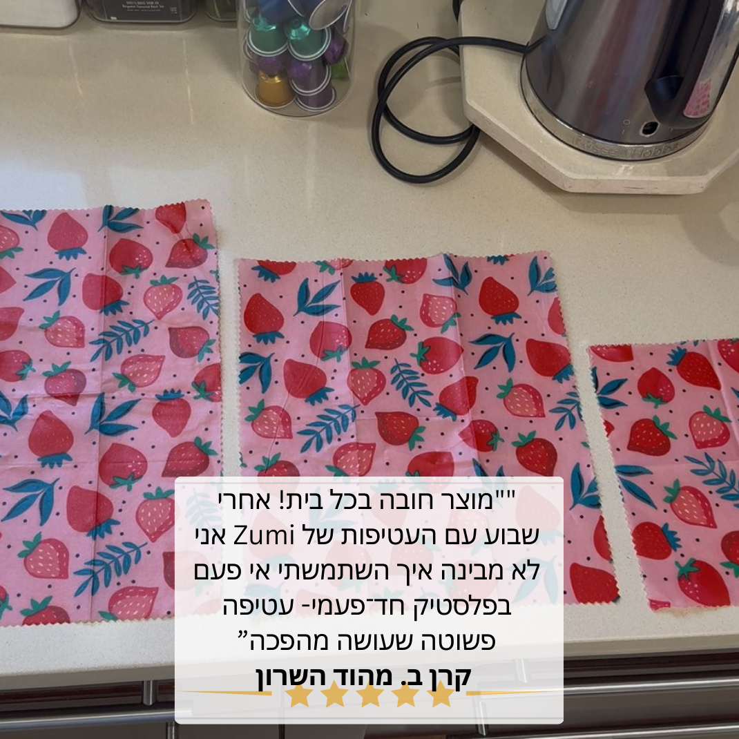 אנחנו גאים לשתף אתכם בחוות הדעת של לקוחותינו בשימוש בזומי – עטיפות אקולוגיות ששומרות על טריות המזון ומכניסות שינוי אמיתי לחיי היומיום.
