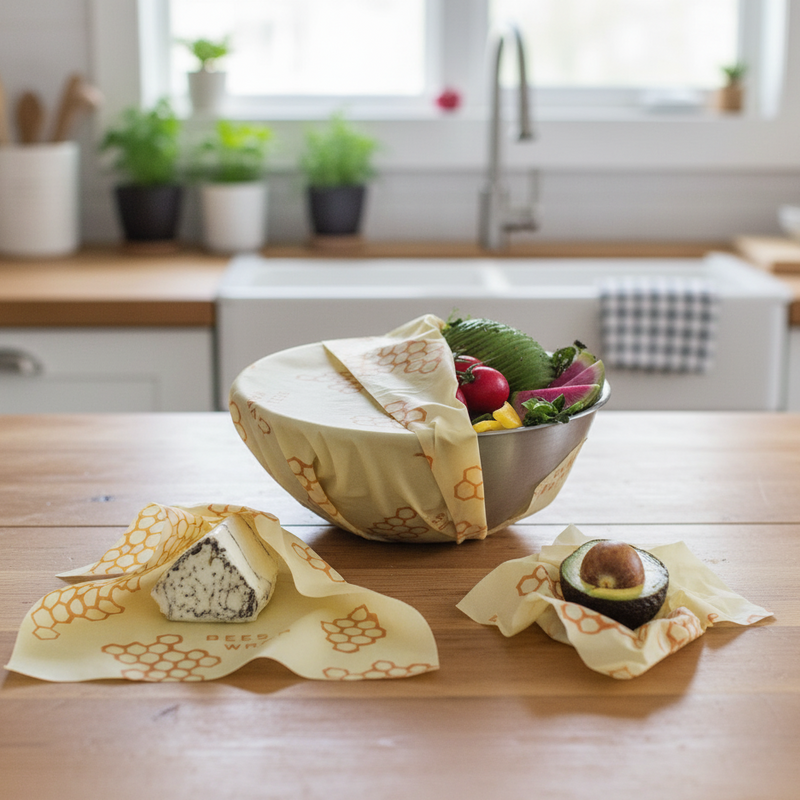 בשונה מאריזות פלסטיק חד־פעמיות, עטיפות השעווה שלנו עשויות אך ורק מחומרים טבעיים, ניתנות למחזור ומורכבות מארבעה מרכיבים אוגניים: